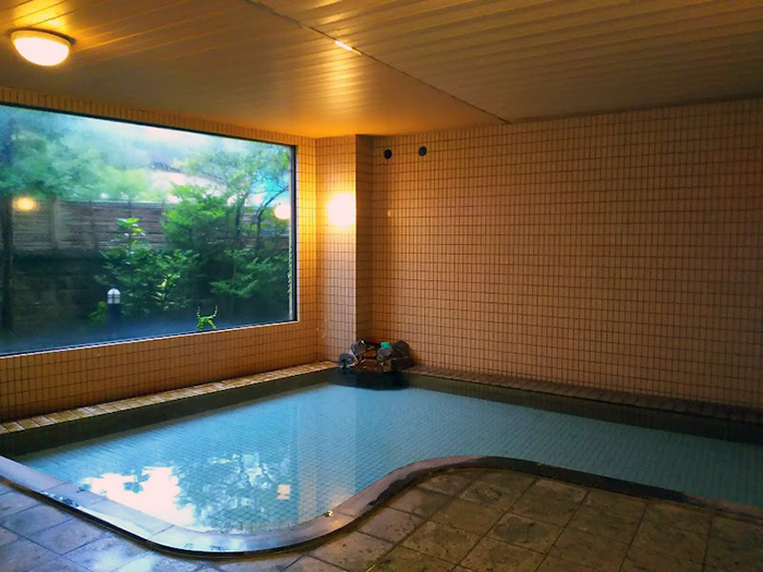 無色透明のお湯は、サラッとして匂いもほぼありません。温泉浴場は大きく、何時でも入れます。