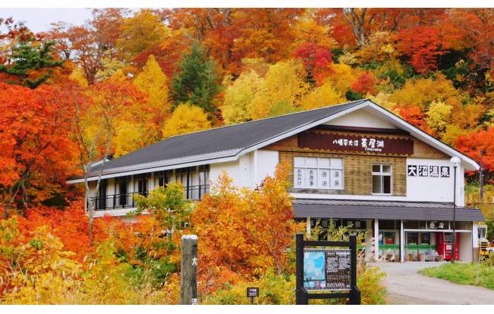 秋田県鹿角市八幡平の紅葉の名所の1つである大沼。その湖畔にあるのがこちらの大沼茶屋湖です。